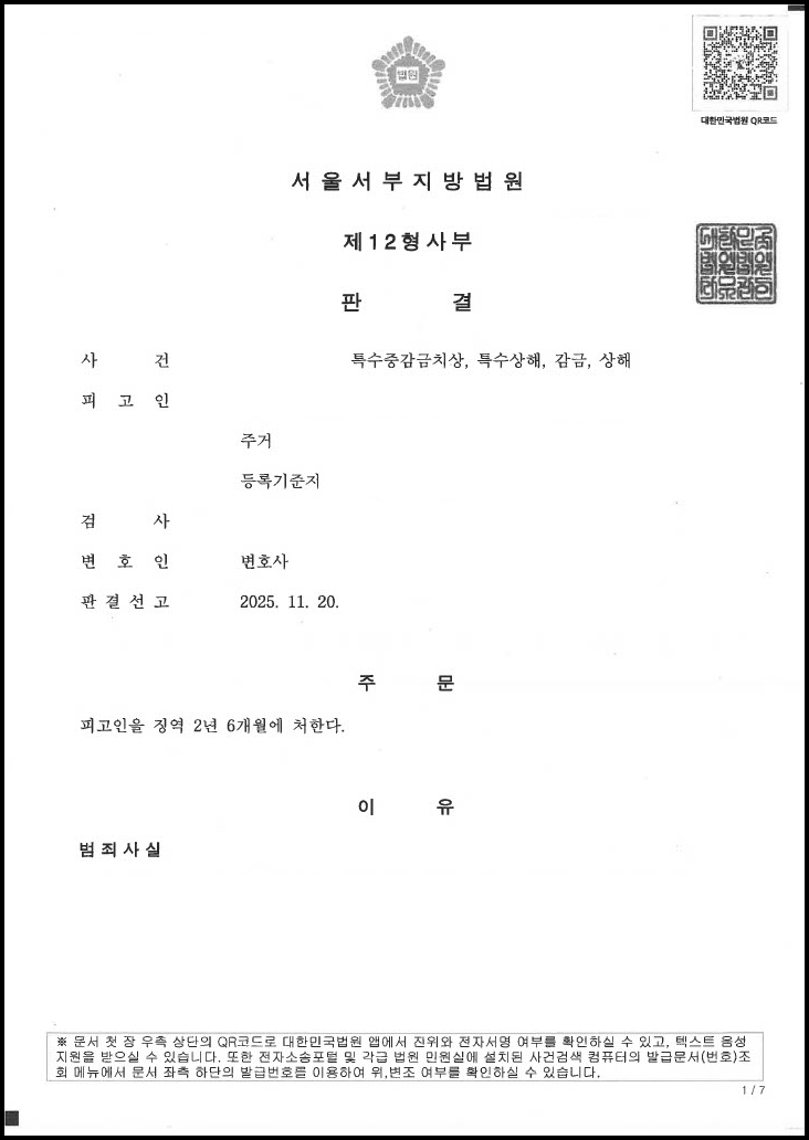 재판부는 법무법인 온강의 주장을 받아들여 피고인의 죄질이 매우 불량하고 피해자가 겪은 고통이 극심함을 인정하였습니다. 그 결과, 초범임에도 불구하고 이례적으로 [징역 2년 6개월]의 실형을 선고하였습니다.