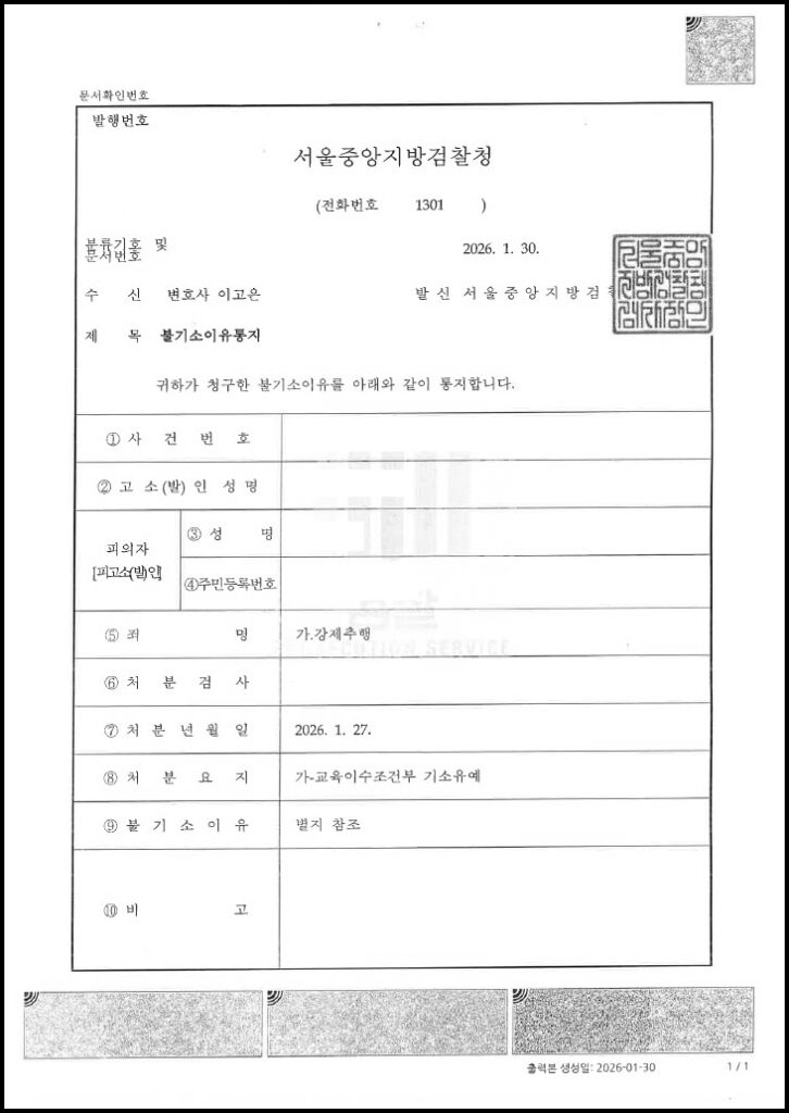 서울북부지방검찰청은 법무법인 온강의 변론을 적극 수용하였습니다. 사안이 가볍지 않으나 의뢰인이 범행을 인정하고 깊이 반성하는 점, 피해자와 원만히 합의한 점, 재범 방지를 위해 영업소를 처분하려는 노력 등을 참작하여 [교육이수조건부 기소유예] 처분을 내렸습니다.
