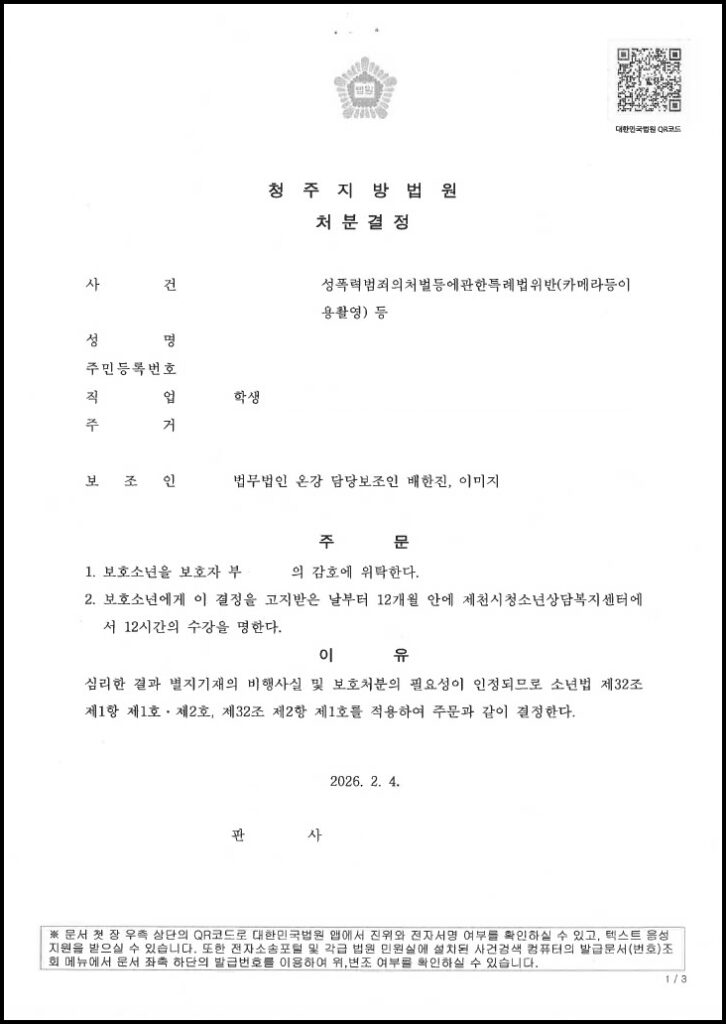본 사건은 단순 촬영을 넘어 ‘AI를 이용한 허위 영상물 제작(딥페이크)’이 포함되어 있어 소년 사건임에도 불구하고 매우 엄중한 처벌(높은 수위의 보호처분)이 예상되는 상황이었습니다. 특히 피해자가 다수였기에 재범 위험성이 없음을 증명하고 실질적인 반성의 태도를 재판부에 전달하는 것이 핵심이었습니다.