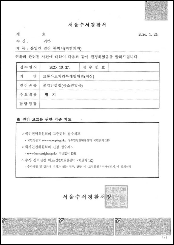 서울수서경찰서 : 불입건 결정 (공소권 없음)