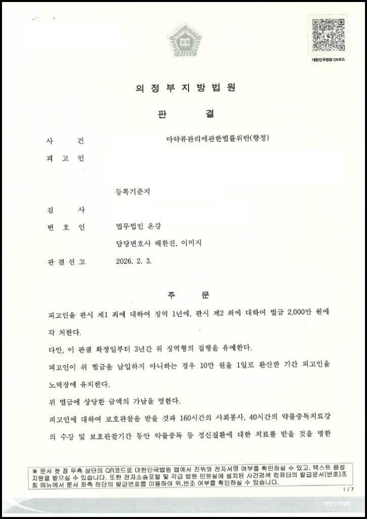 재판부는 의뢰인의 범행 죄질이 결코 가볍지 않음을 엄중히 꾸짖었으나, 법무법인 온강이 제출한 음성 검증 결과와 진정성 있는 회복 노력을 적극적으로 참작하였습니다.