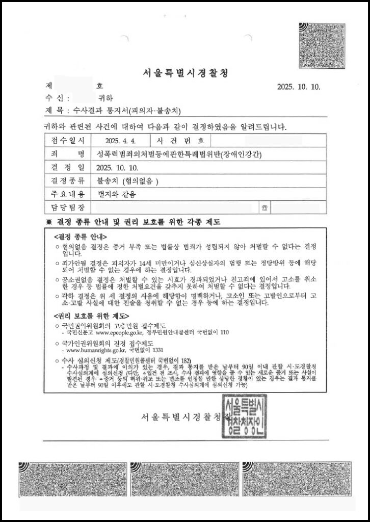 결과적으로 의뢰인은 무거운 성범죄형량의 위협에서 벗어나 ‘혐의없음’ 처분을 받고 평온한 일상으로 돌아갈 수 있었습니다.