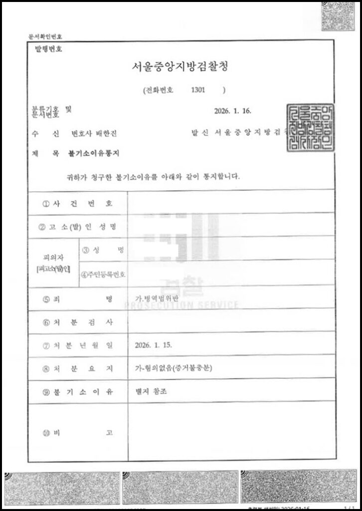 검찰은 법무법인 온강의 변호인 의견서와 제출된 객관적 증거들을 면밀히 검토한 끝에, 의뢰인이 병역을 기피할 목적으로 속임수를 썼다고 볼 증거가 부족하다고 판단하여 [혐의없음(증거불충분)] 처분을 내렸습니다.