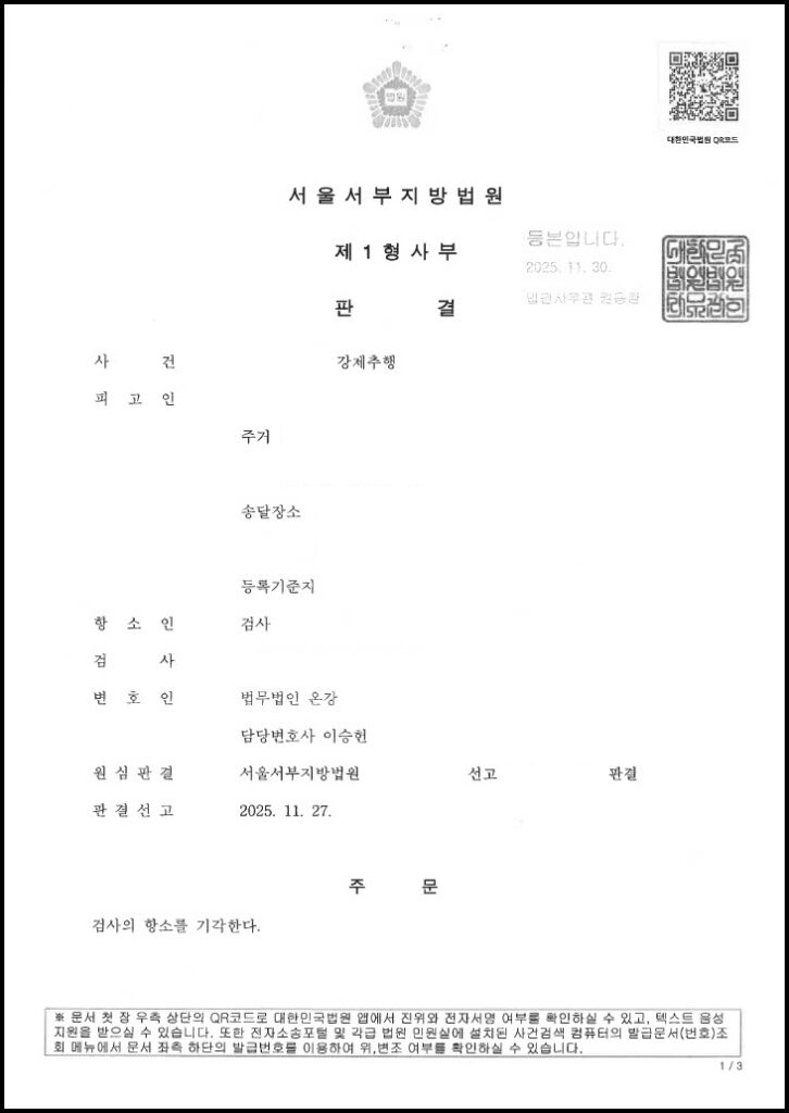 이와 같은 온강 변호인단의 논리적인 변론 끝에, 항소심 재판부는 [검사의 항소를 기각한다]는 판결을 내렸습니다. 이로써 의뢰인은 1심의 벌금형을 유지하며 직장 생활을 계속 이어나갈 수 있게 되었습니다.