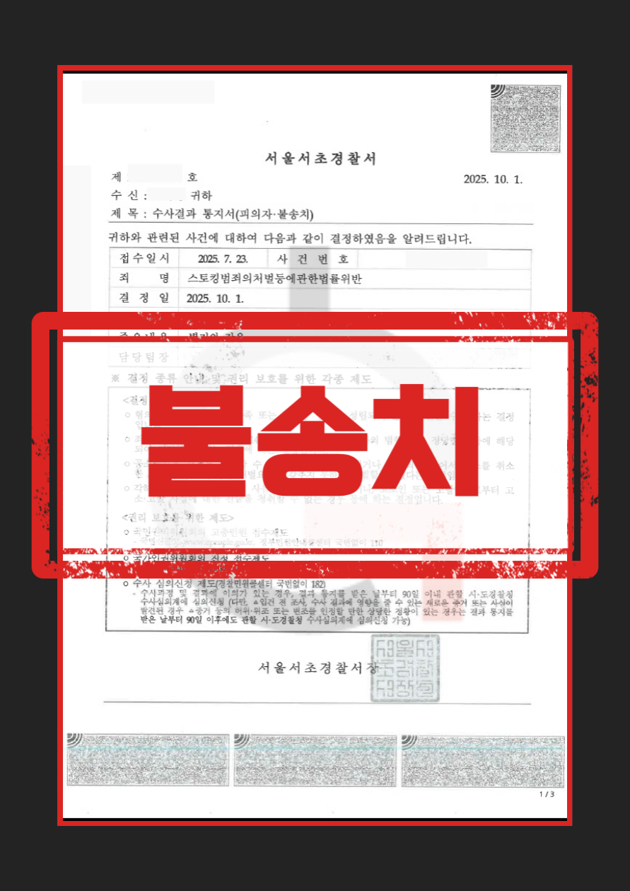 과거 연인에게 메시지와 우연한 만남 등으로 스토킹범죄 혐의로 입건된 사건