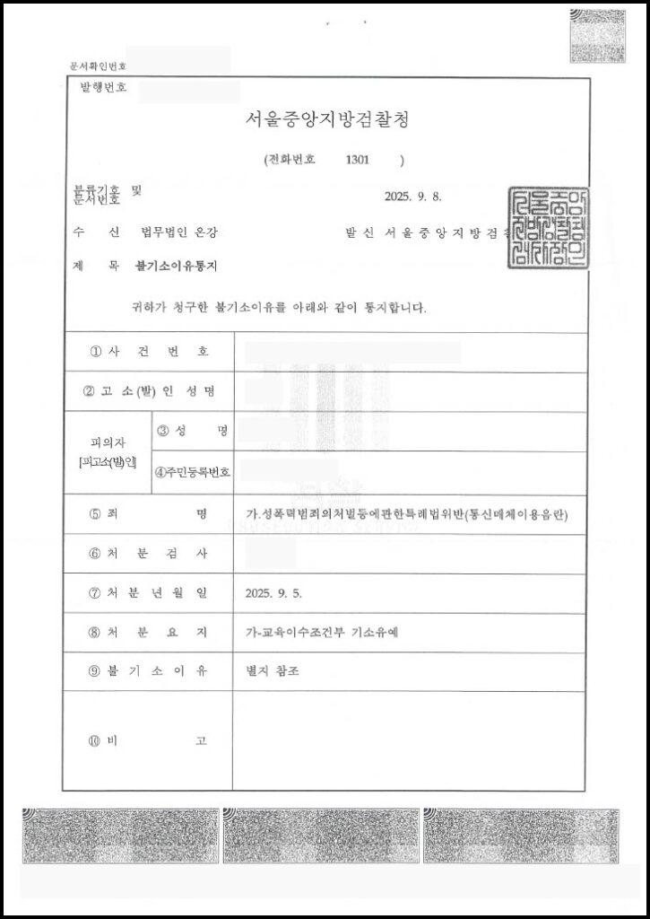 법무법인 온강의 조력으로 의뢰인은 ‘교육이수조건부 기소유예’ 처분을 받았습니다. 이는 의뢰인이 자신의 잘못을 깊이 반성하고 피해 회복을 위해 노력한 점, 초범이라는 점, 건강 상태 및 사회적 유대 관계를 고려한 결과로, 의뢰인은 법적 처벌을 받지 않고 사건을 마무리할 수 있었습니다.
