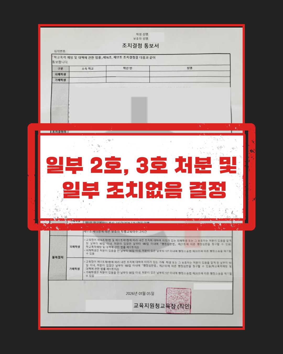 ■ 죄명 : 학교폭력예방및대책에관한법률위반 (성폭력, 신체폭력, 강요 등) ■ 사건의 개요 (사실관계) 중학생인 의뢰인은 같은 반 친구로부터 수개월 전 학교폭력을 당했다는 이유로 갑작스럽게 신고를 당했습니다. 신고 내용에는 ‘바지를 내려 성적인 수치심을 주었다(성추행)’, ‘격투기 기술로 수십 차례 폭행했다’, ‘이물질을 강제로 먹게 했다(강요)’ 등 소년 보호처분이나 형사 고소로 이어질 수 있는 매우 심각한 내용들이 포함되어 있었습니다. 의뢰인은 평소 교사의 부탁으로 해당 친구를 챙겨주며 원만하게 지내왔기에 억울함을 호소했으나, 성범죄 가해자로 낙인찍힐 위기에서 벗어나고자 법무법인 온강을 찾아주셨습니다. ■ 사건 쟁점 (사건특징) 신고 내용 중 ‘성추행’과 ‘상습 폭행’ 혐의가 인정될 경우, 강제 전학(8호) 이상의 중징계가 예상되는 위중한 사안이었습니다. 따라서 피해 학생 진술의 모순점을 찾아내어 성범죄 및 폭행 혐의에 대해 ‘조치 없음(무혐의)’을 이끌어내는 것이 최우선 과제였으며,